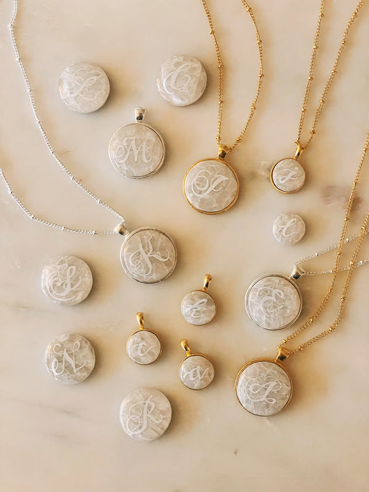Mother of Pearl Monogram Pendant Necklaces